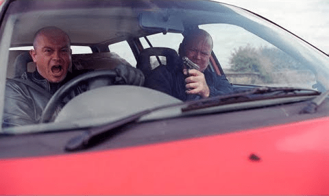 Phil discovered the truth, but kept his mouth shut, He waited until they were in middle of a dangerous robbery the pair were conducting. Escaping the police, the pair argued over their ex-wives in the car and Phil pulled a gun out and shot out the dashboard, sending the car and the Mitchell Brothers careening into the Thames just south of the Millennium Dome. Only Phil emerged from the water.