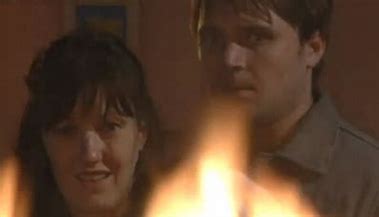 On Halloween, dressed up, he assaulted Donna in her home, snatched baby Sean and broke into the Slater house, where he proceeded to kidnap Mo and hold her ransom as he poured vast quantities of petrol around the place. Lighting a match he threatened to torch the lot, but Mo finally stood up to him, declaring her independence and pushed him aside. He dropped the match and the house went up.