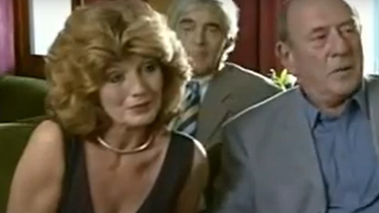 Partly because she was secretly devastated or possibly just to see it with her own eyes, Peggy flew solo to Spain for the funeral. She had the shock of her life while watching the mourners leave the graveside: a red-headed woman, brandishing a rose. Intrigued, and still being owed a fortune from Frank’s debts, Peggy intended to follow the mystery lady – only to run straight into her dead husband himself!