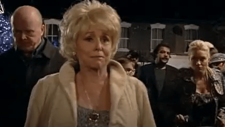 But a pair of lockets would prove Archie’s downfall. One that Ronnie had kept of her baby girl. And an identical one, given to the child, that suddenly found itself in Ronnie’s champagne glass. Left there by Danielle, the moment Ronnie saw it she knew that Archie had lied, Danielle was her daughter and she raced after her long lost baby. Once out on the Square, Danielle ran to her mother – straight into the path of Janine Butcher’s car – and she died shortly afterwards in a disbelieving Ronnie’s arms, her screams filling the night.