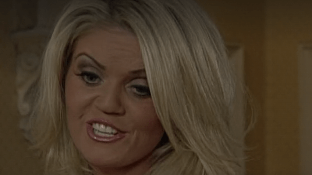 The Mitchells were heading for a meltdown: Archie had played everyone all to get his hands on the Queen Vic and oust Peggy and her clan from their precious boozer. He had intended to marry Peggy and exerted control over her – her money, her time, her clothes. Walking up the aisle, Peggy saw sense, sorted her own wardrobe out and defied Archie at the altar. Oh, she married him, but the wedding reception would be the real event. Archie messed up, failing to kill Danielle when he had the chance. The girl unravelled, blurting the truth to Ronnie and aghast when Ronnie didn’t believe her and threw her out of the pub and onto the pavement.
