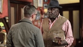 Ben had gone through more than one change while inside and took up boxing in a bid to impress his dad. He kissed his sparring partner Duncan though, which Patrick witnessed and, rather than talking it through rationally, Ben told Phil that Patrick had made it up. Cue the drums as Phil decided to step up a campaign against the Truemans unless they apologised – for nothing, remember – which had more than a few racial undertones to it.